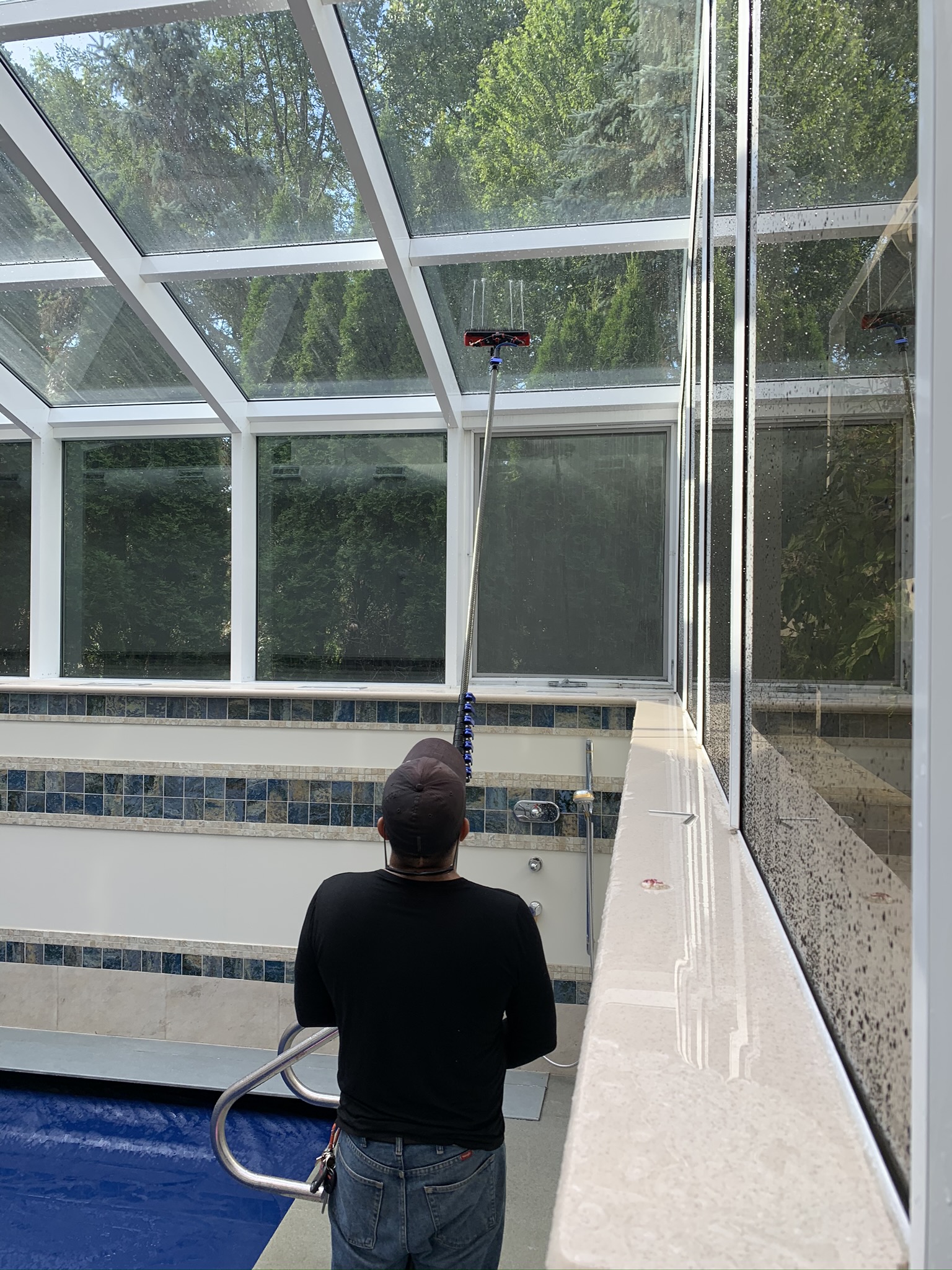 Pure-water tools and careful detailing leave glass and screens spotless without residue.